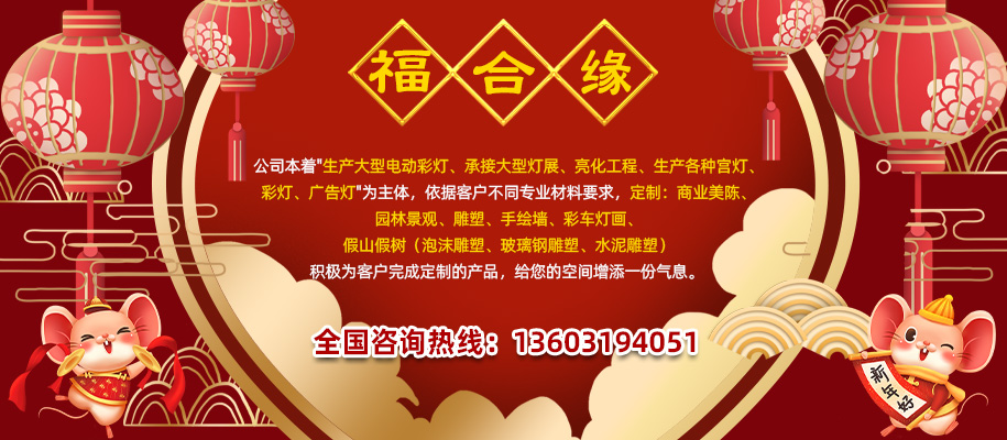 河北省炫妙燈彩有限公司自2000年創立以來,在工藝花燈行業中不斷創新,積累豐富的經歷,擁有設計、制作、安裝組成的專業團隊50于人,為我們的優質作品提供了強有力的保證。公司本著"生產大型電動彩燈、承接大型燈展、亮化工程、生產各種宮燈、彩燈、廣告燈"為主體,依據客戶不同專業材料要求,定制:商業美陳、園林景觀、雕塑、手繪墻、彩車燈畫、假山假樹(泡沫雕塑、玻璃鋼雕塑、水泥雕塑)積極為客戶完成定制的產品,給您的空間增添一份氣息。